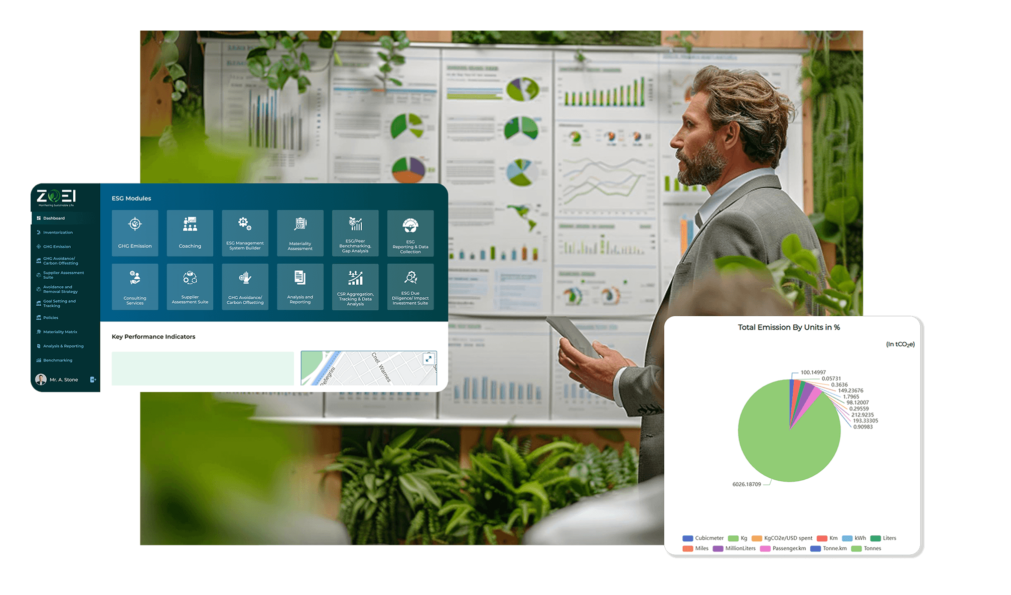 With ZOEI, our ESG management platform, navigates companies’ sustainability journey by simplifying data collection, management, and reporting—making compliance with ESG frameworks effortless and impactful.