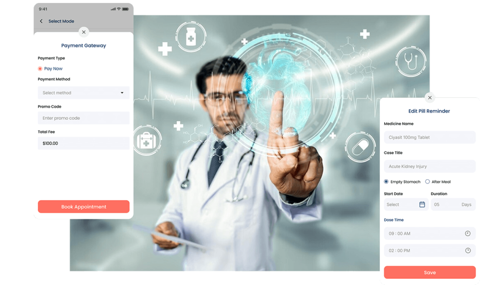 Doctors can access complete patient histories, conduct video consultations, and prescribe medications or tests. Video call recordings are securely stored, ensuring continuity of care.
